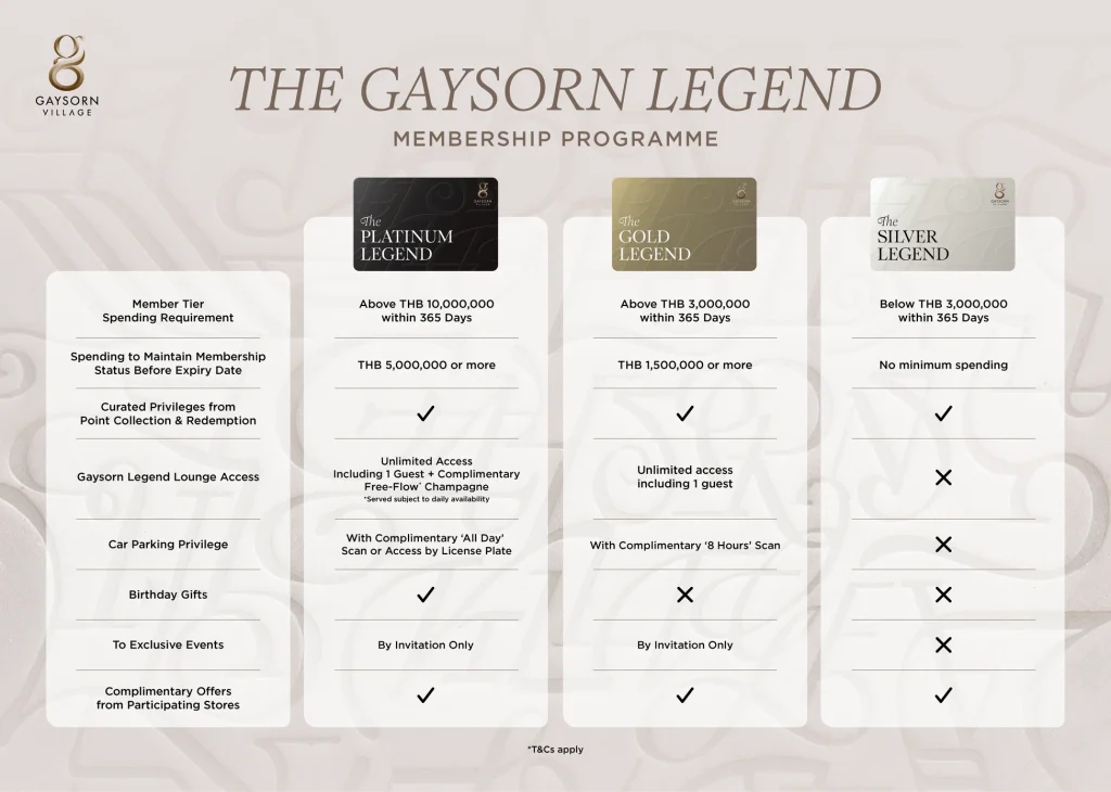 | The Gaysorn Legend Membership Tier | Member Tier Privilege |